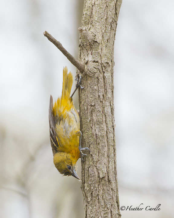 This is either a female tanager or an immature male tanager and apparently it loves to walk down trees instead of flying. It too, longs to be “Spiderman”.